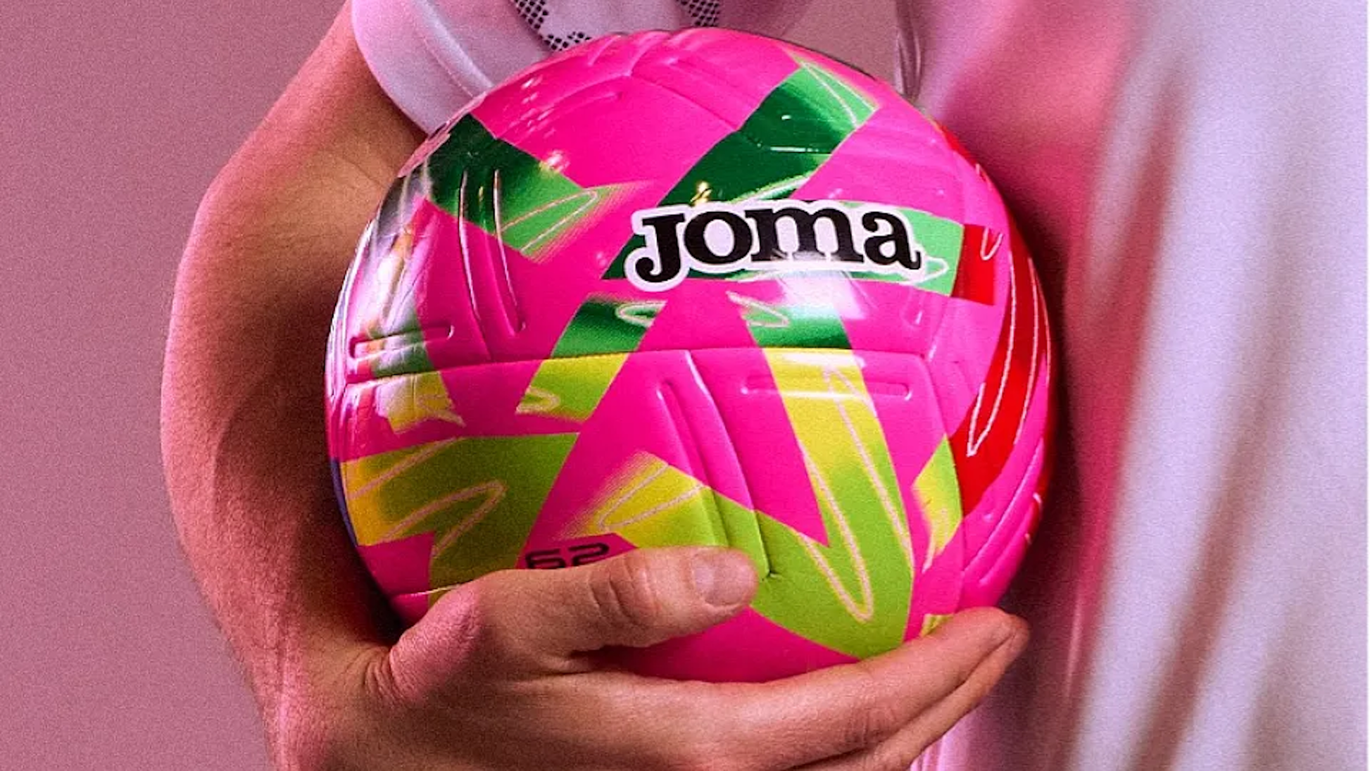 In terms of aesthetics, it features a vibrant combination of pink, red, blue and lime green tones, which favours visibility on the track, even in low light conditions. The Joma logo and the RFEF seal stand out against the design, underlining its official and professional quality character.